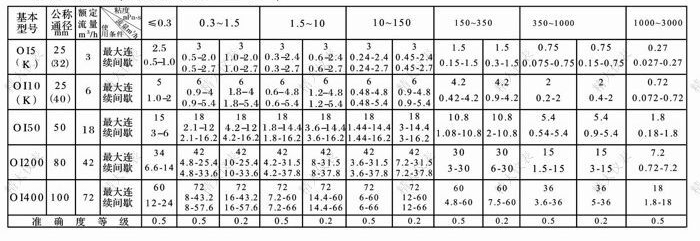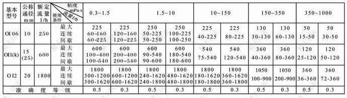 備注:1.測(cè)量冷水的流量范圍,連續(xù)運(yùn)行時(shí)大流量取0.3-1.5mPa.s欄中最大流量的50%;最大流量取欄中最大流量的70%;