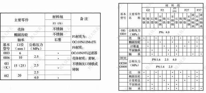 | 材料組 | F2 | 材料組代號(hào),殼體為鑄鋼,橢圓齒輪為不銹鋼 |