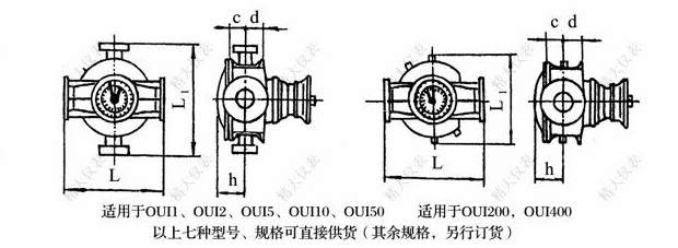 進(jìn)行加熱,使介質(zhì)融化并保溫。但由于安裝橢圓齒輪流量計(jì)處不允許直接通以蒸汽(防止損壞流量計(jì)),為此我公司設(shè)計(jì)了OUI系列產(chǎn)品,即在OI系列流量計(jì)殼體外增加保溫夾套,可用熱水、熱油或低于200℃的蒸汽通入保溫夾套,使流量計(jì)(或過濾器)內(nèi)已凝固的介質(zhì)融化,并保持一定溫度,從而保證流量計(jì)能正常運(yùn)行。橢圓齒輪流量計(jì)前安裝的過了過濾器可采用保溫夾套的形式,用戶需要可特殊訂貨。保溫夾套公稱壓力為0.5MPa。