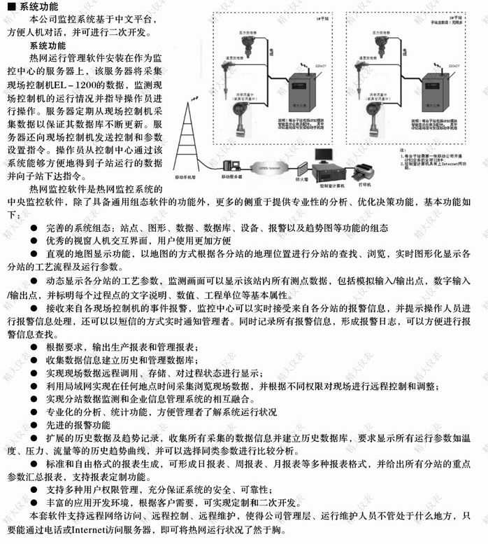 遠(yuǎn)程終端通過(guò)(]PRS~重訊網(wǎng)絡(luò)與監(jiān)控中心實(shí)現(xiàn)實(shí)時(shí)通訊、數(shù)據(jù)傳輸。監(jiān)控中心采集過(guò)程數(shù)據(jù),并提供操作指