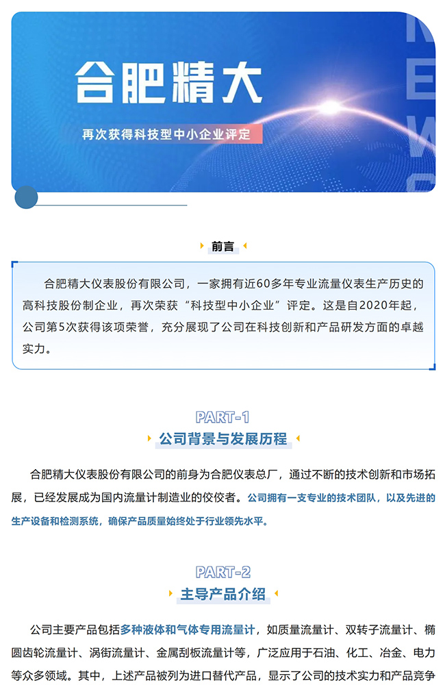 合肥精大儀表股份有限公司再次獲得科技型中小企業(yè)評(píng)定,創(chuàng)新引領(lǐng)未來