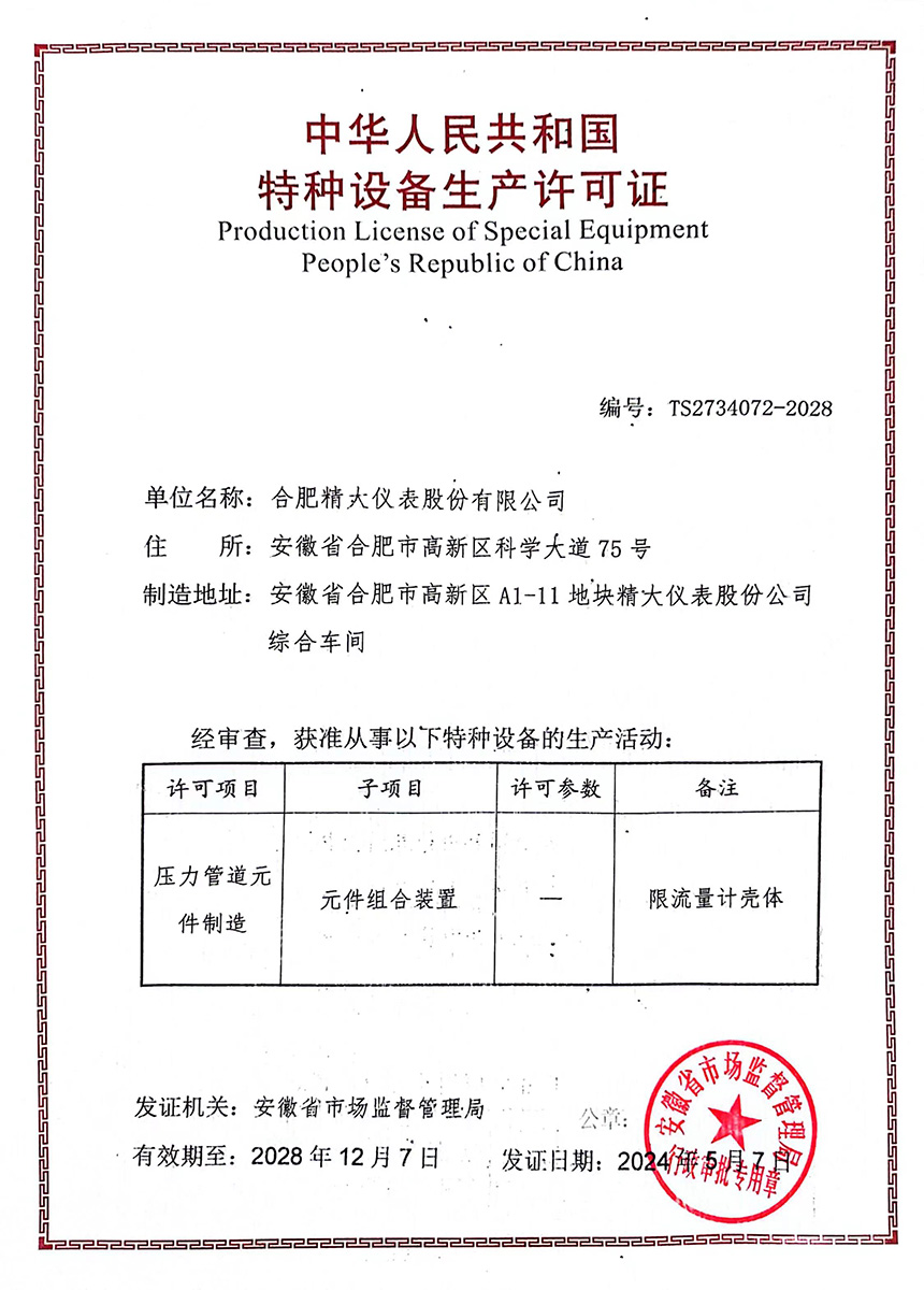 特種設備生產許可證