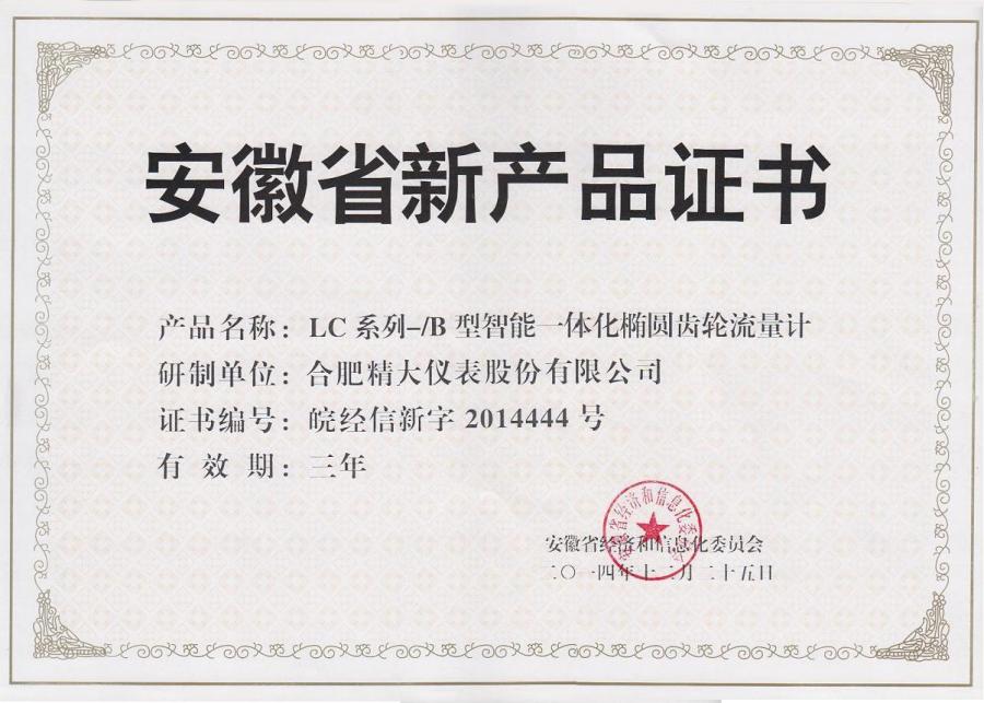 安徽省新產(chǎn)品證書(LC型)