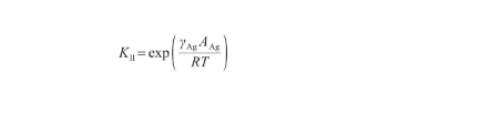 Ag-O系固-液轉(zhuǎn)變過程進行到一定限度時,系統(tǒng)達到平衡,自由能不再發(fā)生變化,且為最小。同時,固態(tài)、液態(tài)中的Ag原子濃度也不再發(fā)生變化,平衡系數(shù)KI表示為: