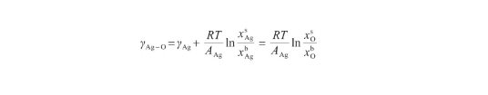 在液態(tài)Ag-O系中,O原子的化學(xué)勢(μO)表示為: