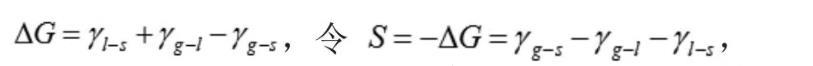 鋪展,是指在等溫、等壓的條件下,液固界面取代了氣固界面,然后產(chǎn)生了氣液界面,這樣一個(gè)物理過程。等溫、等壓條件下,可逆鋪展單位面積時(shí),Gibbs自由能的變化值為