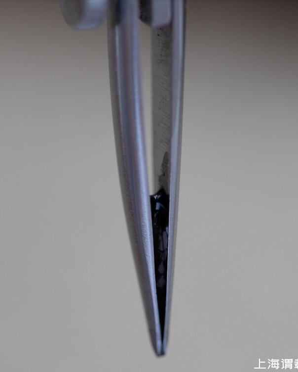 比較簡(jiǎn)單的方法是拿小刀片調(diào)整中縫的開(kāi)縫大小,和筆尖與筆舌間的距離,使更多的墨水能夠到達(dá)銥粒這邊,靠重力也能克服最后內(nèi)凹的這點(diǎn)距離。這一步驟俗稱(chēng)“刀尖”。只要不刮花金屬鍍層,基本上整個(gè)過(guò)程還是可逆的,就算一次下來(lái)效果不滿(mǎn)意也有進(jìn)一步調(diào)整的余地。比如刀得太寬了,還能捏一捏再讓他緊一點(diǎn)。注意這里我們并不是要把中縫一味地開(kāi)大,而是調(diào)整到合適的寬度,因?yàn)樘珜捘€是會(huì)留在中縫里,太窄又無(wú)法順利地從筆舌那邊引過(guò)來(lái)。