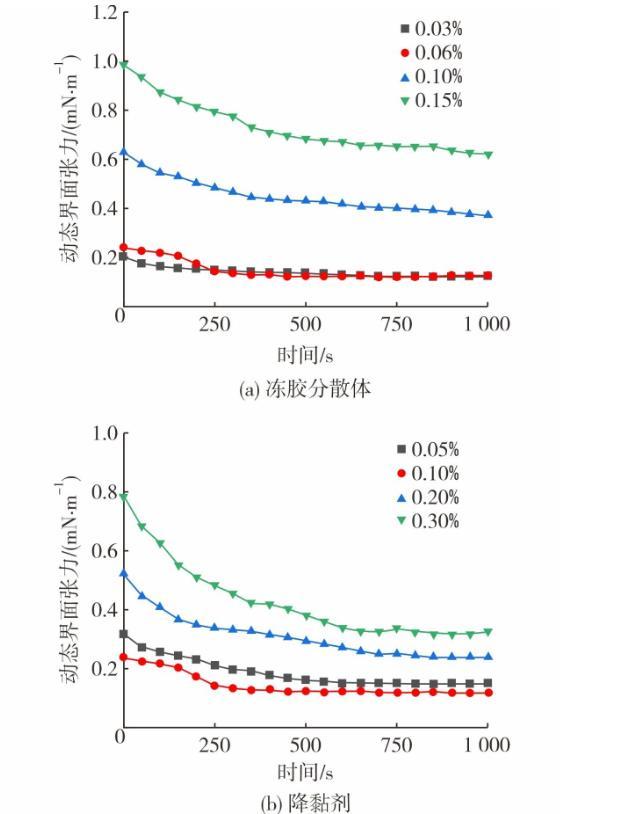 稠油冷降黏劑&采凍膠分散體調(diào)驅(qū)復(fù)配體系對其動態(tài)界面張力的影響