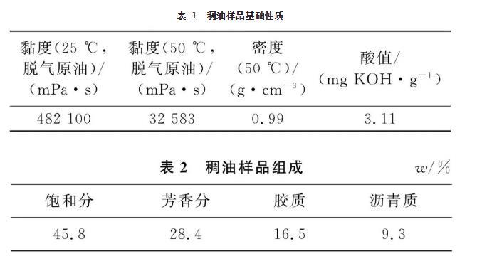表1稠油樣品基礎(chǔ)性質(zhì)
