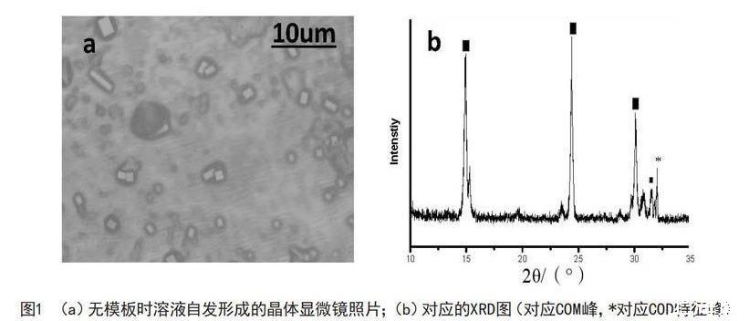 草酸鈣能夠形成3種水合物:一水草酸鈣草酸鈣(CaC204?H20,COM),二水草酸鈣(CaC204?2H20,COD),三水草酸鈣(CaC204?3H20,COT)。其中,一水草酸鈣是人類腎結(jié)石的主要成分。草酸鈣水合物是一種重要的仿生材料的研究體系。這3種草酸鈣晶體的熱力學穩(wěn)定性分別是:COM>COD>COT。本研究采用十八胺LB膜為模板來誘導草酸鈣晶體生成,并探討LB誘導晶體成核與生長的機理。