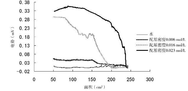 利用表面電勢(shì)分析儀研究了不同配基密度對(duì)LB膜表面電勢(shì)的影響,圖5為不同配基密度DEAE-瓊脂糖LB膜表面電勢(shì)圖像。結(jié)果表明隨著配基密度的增加其表面電勢(shì)不斷增加,LB膜性質(zhì)越穩(wěn)定。