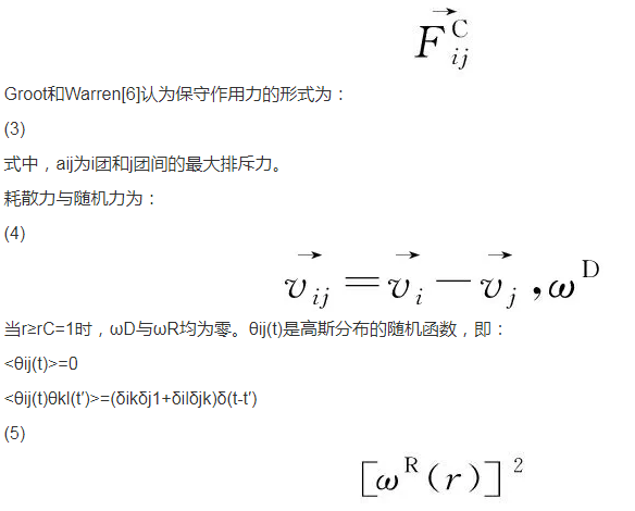耗散力與隨機力為:當r≥rC=1時,ωD與ωR均為零。θij(t)是高斯分布的隨機函數(shù),即:
