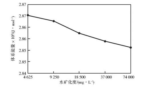 通過軟件計算不同礦化度下的體系能量見圖2。