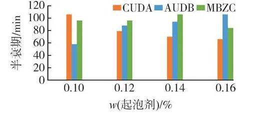 3種起泡劑在不同用量下的半衰期測(cè)試結(jié)果如圖1所示。