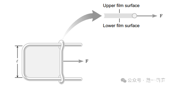 液體的表面張力促使液面收縮,對滑塊有一個向左的拉力,當我們用一個向右的力與之平衡時,可以獲得力的大小,然后與滑塊的長度一起可以算出表面張力系數(shù)。