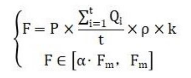 其中,F(xiàn)為高壓水流沖洗設(shè)備實(shí)際水流沖洗的沖擊力,Qi為高壓水流沖洗設(shè)備第i秒水流的流量,t為高壓水流沖洗設(shè)備預(yù)設(shè)的水流沖洗的時(shí)長(zhǎng),ρ為水的密度,k為預(yù)設(shè)定的閾值參數(shù),P為輸出功率可調(diào)的高壓水流沖洗設(shè)備的實(shí)際輸出功率,α為預(yù)設(shè)的抗壓閾值參數(shù)且其數(shù)值小于1,F(xiàn)m為新能源電池沖壓配件最大抗沖擊力值。