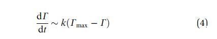 當(dāng)系統(tǒng)接近飽和時(shí),G(t) 的下降必須 隨著表面變得擁擠,請(qǐng)減速。 的濃度 吸附在表面下方,然后失去平衡 與吸附的物種和動(dòng)力學(xué)受到限制 吸附屏障。 然后一級(jí)動(dòng)力學(xué)過程導(dǎo)致:
