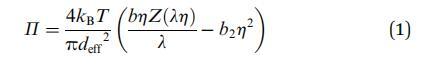吸附在流體-流體界面上的粒子與 并產(chǎn)生表面壓力 (P),即 3D 系統(tǒng)中壓力的 2D 模擬。 通過擴(kuò)展這個(gè) 進(jìn)一步類比,也可以將這個(gè)表面壓力聯(lián)系起來 通過狀態(tài)方程到其他狀態(tài)參數(shù),如數(shù)密度和溫度。 用于吸附膠體顆粒 在流體-流體界面上,最簡(jiǎn)單的近似可能是 2D硬盤。 狀態(tài)方程 (EOS) 為一個(gè) 組件系統(tǒng)根據(jù)密度相關(guān)性給出 壓縮系數(shù) Z。文獻(xiàn)中充滿了 提供表達(dá)的多種方法 EOS 2D 硬盤液。 Mulero 等人 27,28 提供了一個(gè)簡(jiǎn)潔的 回顧和比較所有這些狀態(tài)方程。