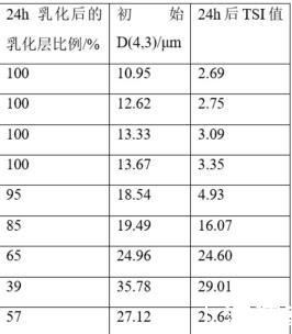 將玉米油加入第三物料中獲得第四物料,其中玉米油的用量為45重量%。隨后將第四物料在常溫下進(jìn)行剪切處理,剪切速率為12000 r/min,時(shí)間為5min。即獲得玉米內(nèi)源組分乳液。