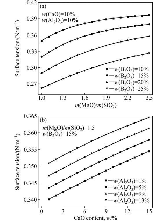 3.4 MgO-B2O3-SiO2-CaO-Al2O3體系中組分含量對熔渣表面張力的影響