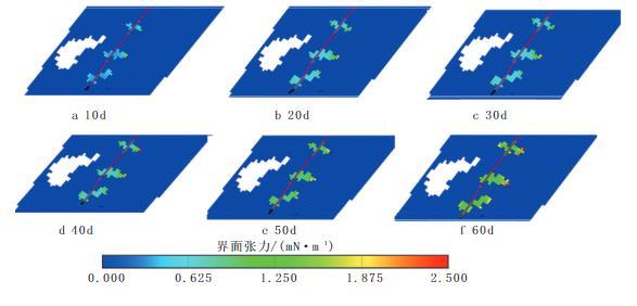 圖1悶井過程中裂縫附近界面張力隨時(shí)間的變化局部放大場(chǎng)圖