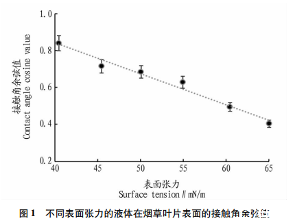 [方法]通過測定4種增效助劑使用下9種煙草常用化學(xué)農(nóng)藥表面張力值,以煙草葉片臨界表面張力為判定指標,篩選適用于不同化學(xué)農(nóng)藥的增效助劑種類和劑量。
