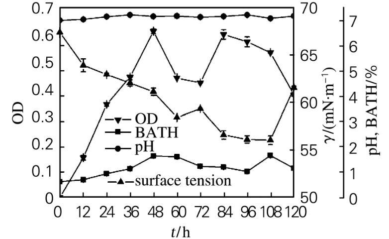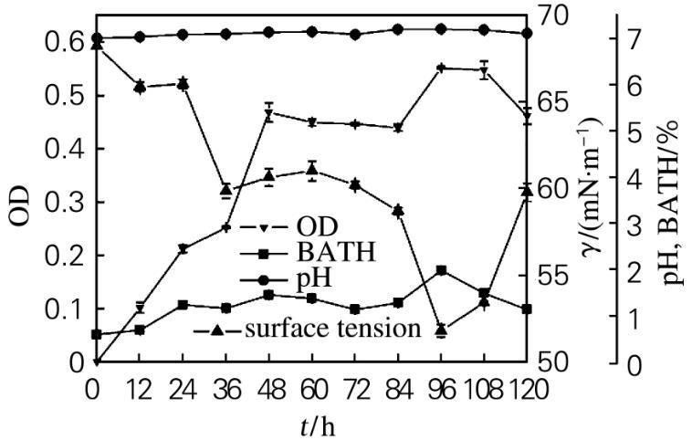 2.3生物表面活性劑產(chǎn)生菌的生長特性