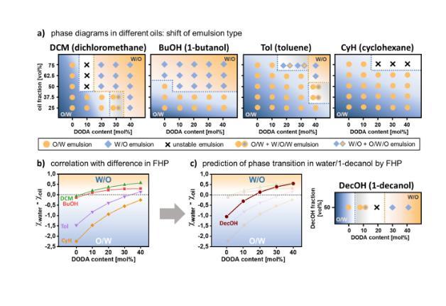 圖5.Flory?Huggins參數(shù)允許預(yù)測(cè)不同油/水乳液體系的相反轉(zhuǎn)