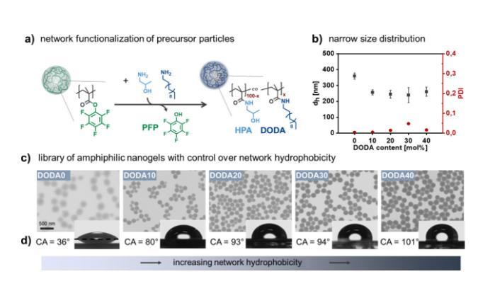 圖1.具有不同網(wǎng)絡(luò)疏水性但類似膠體性質(zhì)的兩親性納米凝膠庫(kù)