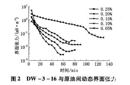 圖2 DW-3-16與原油間動態(tài)界面張力