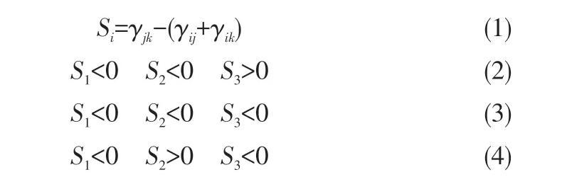 氣液液微分散技術在萃取分離領域的應用是本文的重點關注對象,通常氣相作為內相,萃取劑為中間相,低濃度稀土離子的水溶液為連續(xù)相。對于不同體系,最終所形成的氣液液三相流流型由三相界面張力關系決定。根據三相界面張力Torza等引入了鋪展系數(shù)[式(1)],若鋪展系數(shù)滿足式(2),該體系可形成水包油包氣中空液滴結構;若鋪展系數(shù)滿足式(3),該體系可形成Janus結構;若鋪展系數(shù)滿足式(4),油滴和氣泡將互相分離。對于常見的氮氣/P507萃取劑/稀土離子鹽酸水溶液體系,該體系界面張力關系滿足式(2),可形成穩(wěn)定的水包油包氣結構。連續(xù)相的稀土離子與中間相的萃取劑在界面接觸發(fā)生反應,實現(xiàn)了稀土離子從水相到有機相的傳質。在該過程中氣體的引入有兩個獨特優(yōu)勢:一是中空微液滴的形成增大了傳質比表面積,加快反應速率;二是與油滴相比中空微液滴的密度大大減小,因此可加速分相。與液液萃取相比,氣液液微分散萃取技術具備傳質快及易分相的特點,有望解決大相比萃取過程中萃取效率低、易乳化等問題。