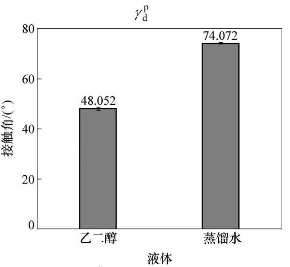 圖5 20℃時(shí)不同液體在CBT500薄板上靜態(tài)接觸角