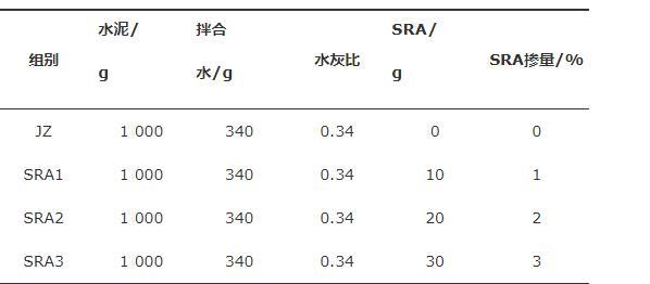選用江蘇蘇博特新材料股份有限公司研發(fā)的SRAⅠ聚醚型減縮劑(SRA),基本物化特性如表2所示。