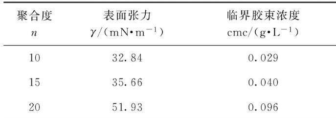 表1馬來酰蓖麻油酸聚乙二醇(n=10、15、20)酯的γ和cmc
