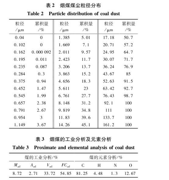 利用激光粒度分析儀對實驗用的煤塵粒徑分布特征測試,結(jié)果見表2。