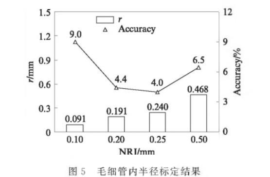 圖5毛細(xì)管內(nèi)半徑標(biāo)定結(jié)果