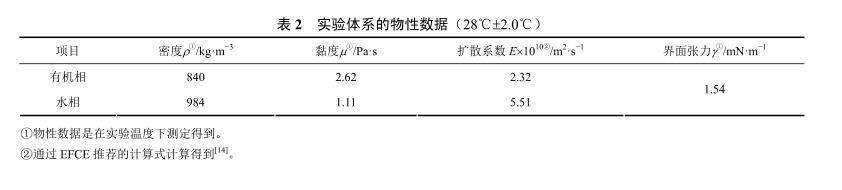 表2實(shí)驗(yàn)體系的物性數(shù)據(jù)(28℃±2.0℃)