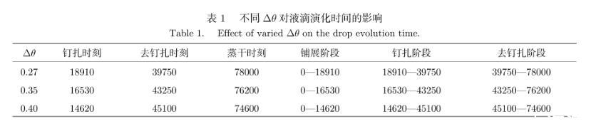 表1不同Δθ對(duì)液滴演化時(shí)間的影響