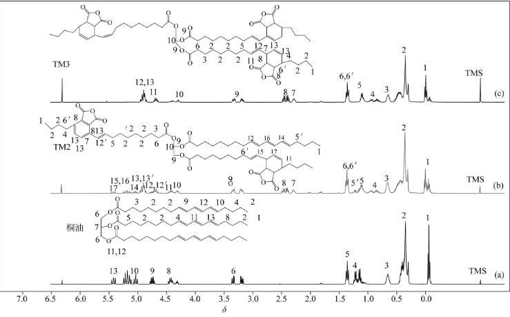 圖2桐油、TM2、TM3的1H NMR圖