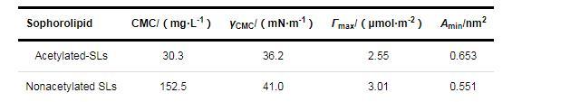 表4乙?;疭Ls和去乙?;疭Ls在氣液界面上的吸附參數(shù)