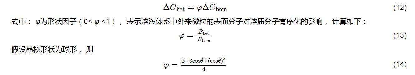 根據(jù)均相成核和非均相成核理論,在非均相成核條件下形成臨界晶核所需自由能的變化(ΔGhet)與均相成核條件下形成臨界晶核所需自由能的變化(ΔGhom)間的關(guān)系為