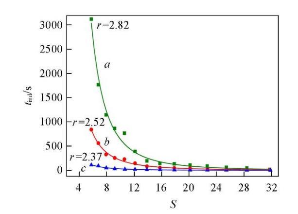 成核誘導期與過飽和度的半經(jīng)驗關(guān)系式[33]如下:
