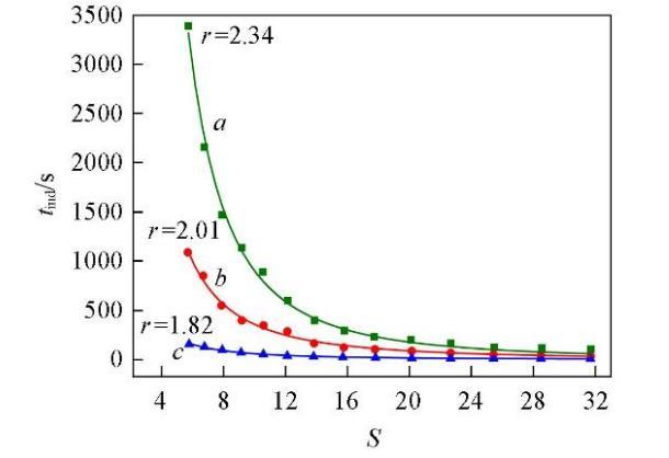 對于初級均相成核,成核速率與誘導期tind成反比,因此,式(9)可改為如下形式: