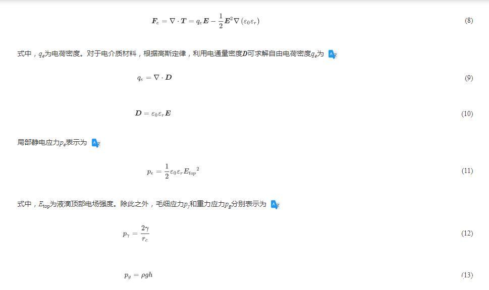 式中,ε0為真空介電常數(shù),εr為液體相對介電常數(shù),ke為液滴導(dǎo)電率。本實驗全程在空氣常溫環(huán)境下進行,此環(huán)境下去離子水(ke=5×10-6 S/m)的介電弛豫時間τe大約為在1.77μs,而液滴撞擊過程維持了幾十毫秒,遠遠大于介電弛豫時間,因此印證液滴在撞擊過程中實現(xiàn)了充分的電荷積累,其撞擊行為深受電流體力學(xué)影響。
