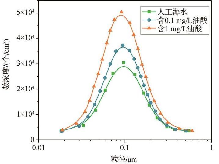 圖3油酸對人工海水產(chǎn)生的海洋飛沫氣溶膠(SSA)粒徑分布的影響
