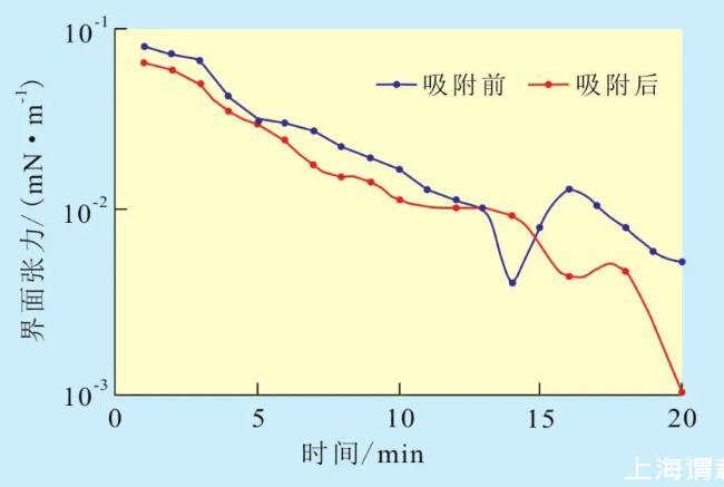 圖1磺基甜菜堿泡沫劑吸附前后與原油的界面張力