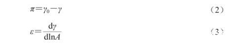 通過CCD相機高速采集油滴輪廓信息,通過Laplace方程計算得到界面張力,通過監(jiān)測油滴表面積發(fā)生變化時界面張力的變化值,計算得到界面彈性模量,按公式(2)、(3)計算: