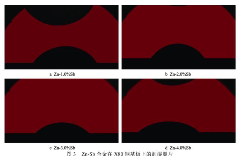 2.2 Zn-Sb/X80鋼體系的潤濕性分析