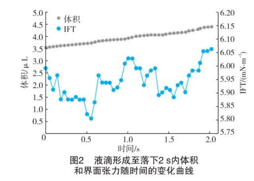 實(shí)驗(yàn)選用3滴圖像作為計(jì)算依據(jù),是因?yàn)橐旱卧诘温溥^程中需要時(shí)間,界面張力會(huì)隨液滴體積變化略有變化。
