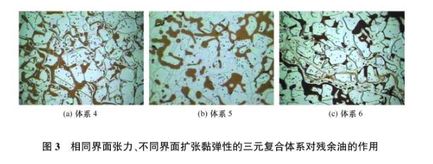 3.1.1相同界面張力、不同界面擴(kuò)張黏彈性的三元復(fù)合體系對(duì)殘余油的作用